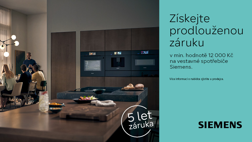 Získejte prodlouženou 5letou záruku na vybrané spotřebiče Siemens zakoupené u autorizovaných kuchyňských a interiérových studií v období od 1. ledna 2025 do 31. prosince 2025. Přečtěte si všechny podmínky pro získání prodloužené záruky: ZDE.