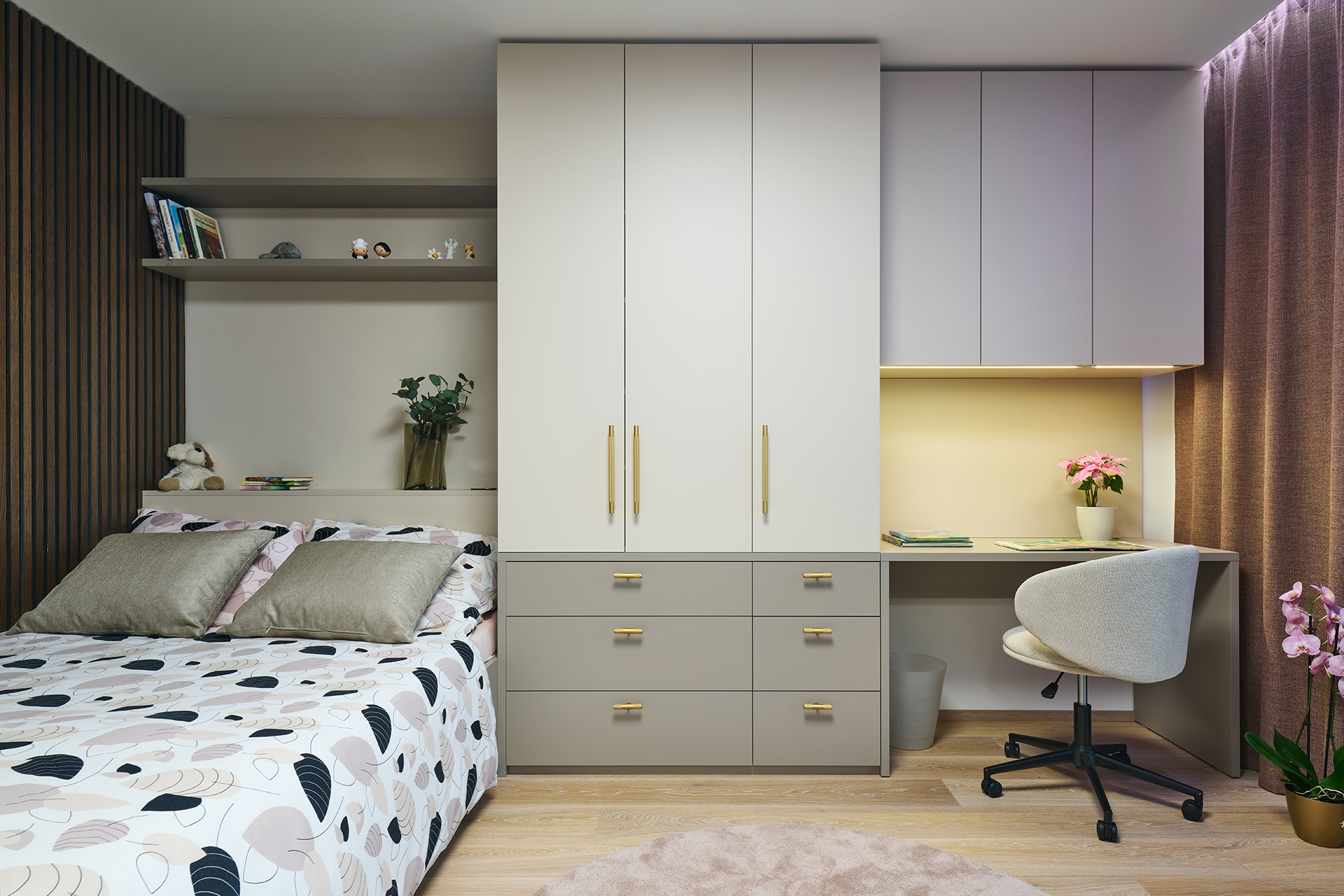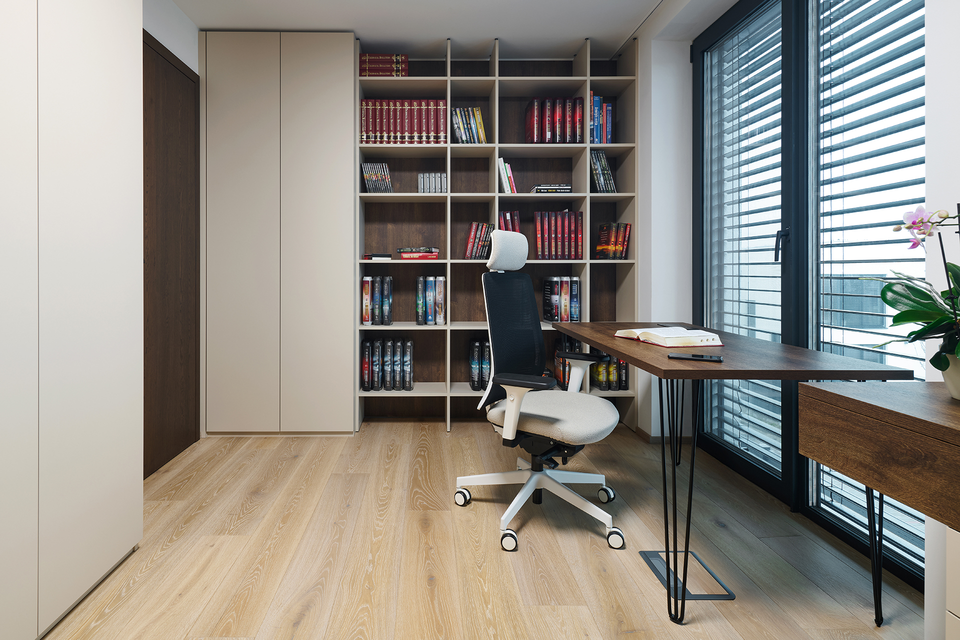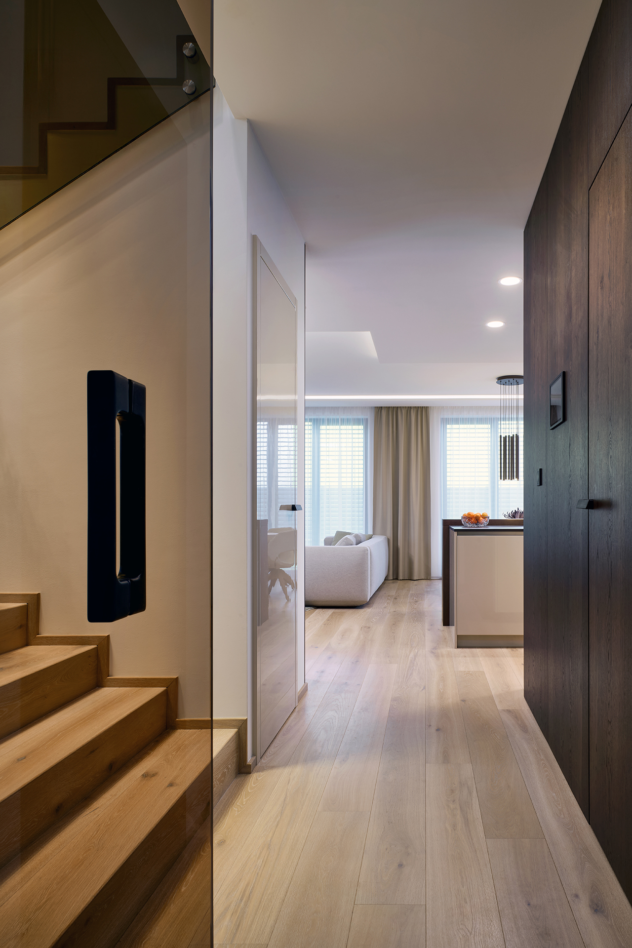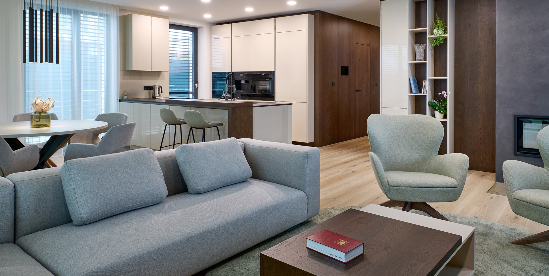 Koncept, který propojuje nábytek, interiérové dveře, stěnové obklady i vestavěné prvky do jednoho architektonického řešení. Každý detail má své místo a funkci.